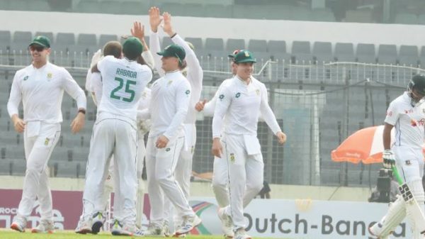 খেলাধূলা ডেস্ক: মিরপুর টেস্টে দক্ষিণ আফ্রিকার কাছে ৭ উইকেটে হেরেছে বাংলাদেশ। বাংলাদেশের দেওয়া ১০৬ রানের টার্গেটে ব্যাট করতে নেমে মাত্র ২ উইকেট হারিয়ে জয় তুলে নেয় প্রোটিয়ারা। এই জয়ে সিরিজে