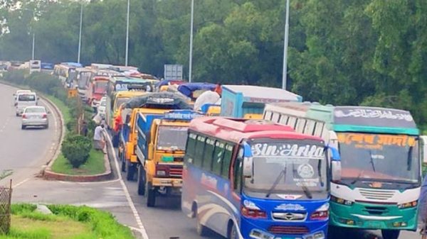 নিজস্ব প্রতিবেদক: ঢাকা-টাঙ্গাইল-বঙ্গবন্ধু সেতু মহাসড়কে এলেঙ্গা থেকে বঙ্গবন্ধু সেতু পর্যন্ত ১৩ কিলোমিটারে যানবাহনের ধীরগতি রয়েছে। এতে কোথাও কোথাও যানজটের কারণে থেমে আছে পরিবহন। বুধবার (১২ জুন) ভোর থেকে ঢাকা-টাঙ্গাইল-বঙ্গবন্ধু সেতুপূর্ব