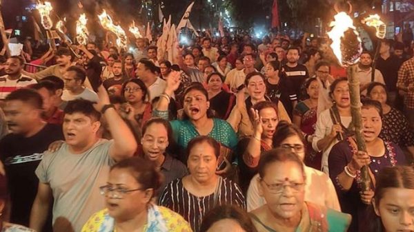 আন্তর্জাতিক ডেস্ক: ভারতের পশ্চিমবঙ্গের কলকাতায় আর জি কর মেডিকেল কলেজ হাসপাতালের এক চিকিৎসককে ধর্ষণের পর হত্যার ঘটনায় বিক্ষোভ ছড়িয়ে পড়েছে রাজ্যজুড়ে। এরই ধারাবাহিকতায় রাতে রাজপথে নেমে এসেছেন অসংখ্য নারী। বুধবার