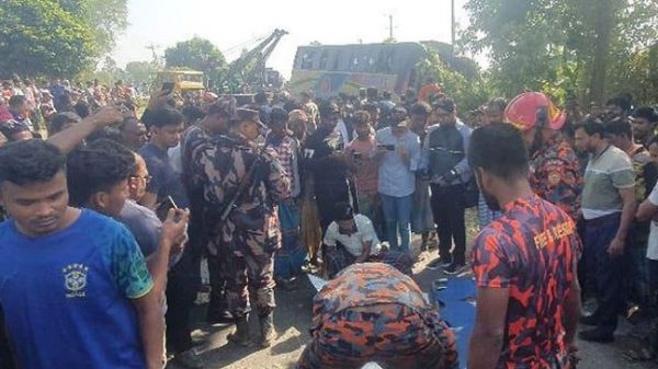 গাজীপুর প্রতিনিধি: গাজীপুরে কাভার্ড ভ্যান ও ট্রাকের চাপায় পড়ে একটি অটোরিকশার চারজন নিহত হয়েছেন। গতকাল বুধবার রাত সাড়ে ১১টার দিকে ঢাকা-ময়মনসিংহ মহাসড়কের চান্দনা চৌরাস্তায় ফ্লাইওভারের নিচে এ দুর্ঘটনা ঘটে। নিহতরা