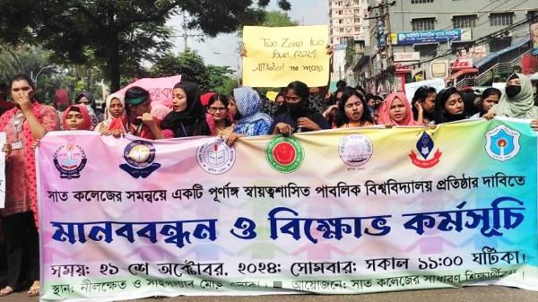 নিজস্ব প্রতিবেদক: ঢাকা বিশ্ববিদ্যালয়ের (ঢাবি) অধিভুক্ত থেকে মুক্তি হয়ে এবার রাজধানীর সরকারি সাতটি কলেজ নিয়ে স্বায়ত্তশাসিত বা স্বতন্ত্র পাবলিক বিশ্ববিদ্যালয় প্রতিষ্ঠার দাবি জানিয়ে আন্দোলন করছেন সাধারণ শিক্ষার্থীরা। সায়েন্সল্যাব মোড়ে সোমবার