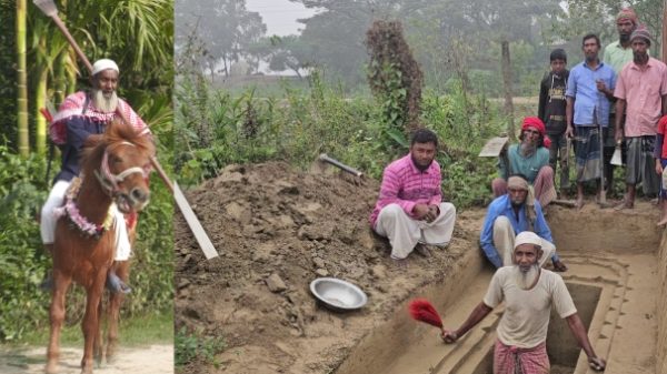 প্রায় ৫০ বছর ধরে বিনা পারিশ্রমিকে কবর খোঁড়ার কাজ করেন কিশোরগঞ্জের ইটনা উপজেলার মনু মিয়া। এই কাজে ঘোড়ার পিঠে চড়েই দিন-রাত একপ্রান্ত থেকে অন্যপ্রান্তে ছুটে চলতেন তিনি। এভাবেই তিন হাজারেরও