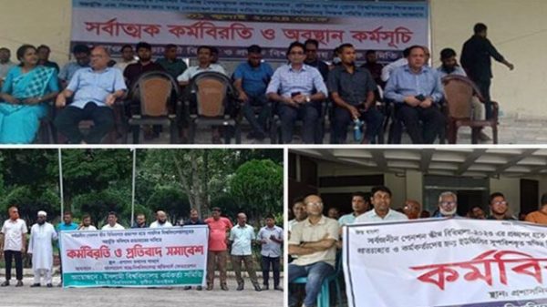 নিজস্ব প্রতিবেদক: পেনশন নিয়ে শিক্ষক, কর্মকর্তা ও কর্মচারীদের আন্দোলনের কারণে দেশের ৩৫টি পাবলিক বিশ্ববিদ্যালয়ে ক্লাস ও পরীক্ষা বন্ধ হয়ে গেছে। গতকাল সোমবার (১ জুলাই) থেকে এসব বিশ্ববিদ্যালয়ে অনির্দিষ্টকালের সর্বাত্মক কর্মবিরতি
