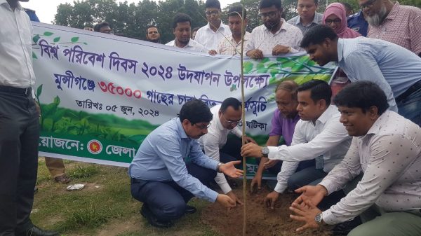 মোঃ জাহিদ হাসান। মুন্সিগঞ্জের লৌহজং উপজেলা প্রশাসনের আয়োজনে গতকাল বুধবার (৫ জুন)সকাল ১১ঘটিকায় উপজেলা প্রাঙ্গণে বিশ্ব পরিবেশ দিবস উদযাপন উপলক্ষে বৃক্ষরোপণ করে কর্মসূচির উদ্বোধন করেন মুন্সিগঞ্জ জেলা প্রশাসক ও জেলা