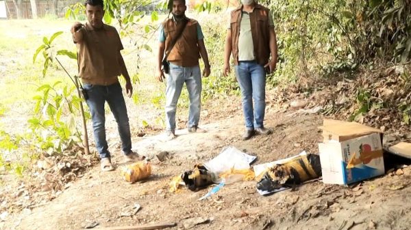 লৌহজং প্রতিনিধি মুন্সিগঞ্জের লৌহজং উপজেলা ৪ এপ্রিল বেলা ৩ঘটিকায় উপজেলা মেদেনীমন্ডল ইউনিয়ন আনোয়ার চৌধুরী উচ্চ বিদ্যালয় সামনে প্রধান সড়কের পাশে কাগজের কাটুনের বাহিরে মাটিতে পরে থাকা পলিথিনে মোড়ানো মানুষ মাথা