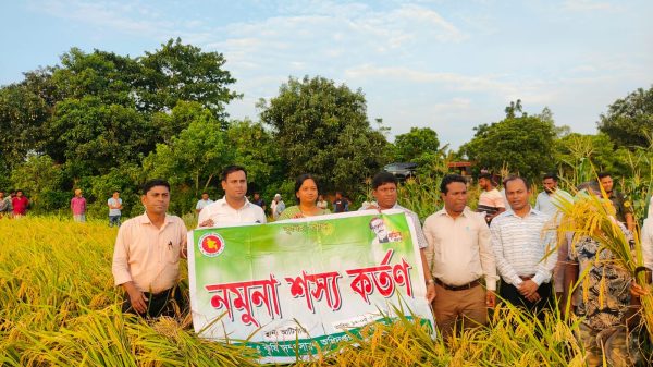 মানবতার কণ্ঠ ডেস্ক মোঃ জাহিদ হাসান। মুন্সীগঞ্জে লৌহজং উপজেলার বেজগাও ইউনিয়নে কুরিগাও সরকারি প্রাথমিক বিদ্যালয়ের মাঠে সমলয় পদ্ধতিতে বরো ধান চাষ ব্লক প্রদর্শনীর ধান কর্তণের জন্য কৃষকদের সাথে মতবিনিময় করেন