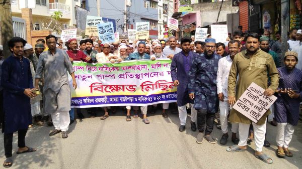 নারায়নগঞ্জের বন্দরে পানির নতুন পাম্প স্থাপনসহ পুরনো পাম্প সচল করার দাবিতে গণবিক্ষোভ করেছে ২১ ও ২২নং ওয়ার্ডবাসী। ২১মার্চ শুক্রবার বাদ জুম্মা অবিচল রাজবাড়ী,আমরা বাড়ইপাড়া ও বন্দর শাহী মসজিদসহ ২১নং ওয়ার্ডবাসীর